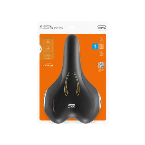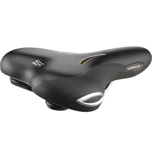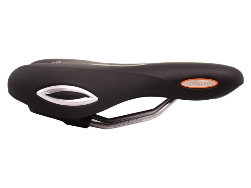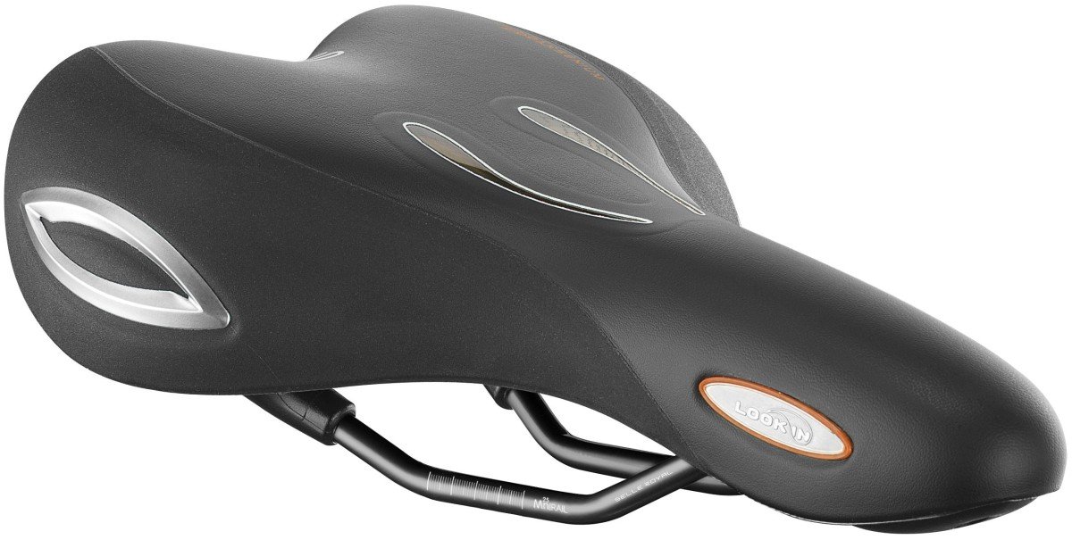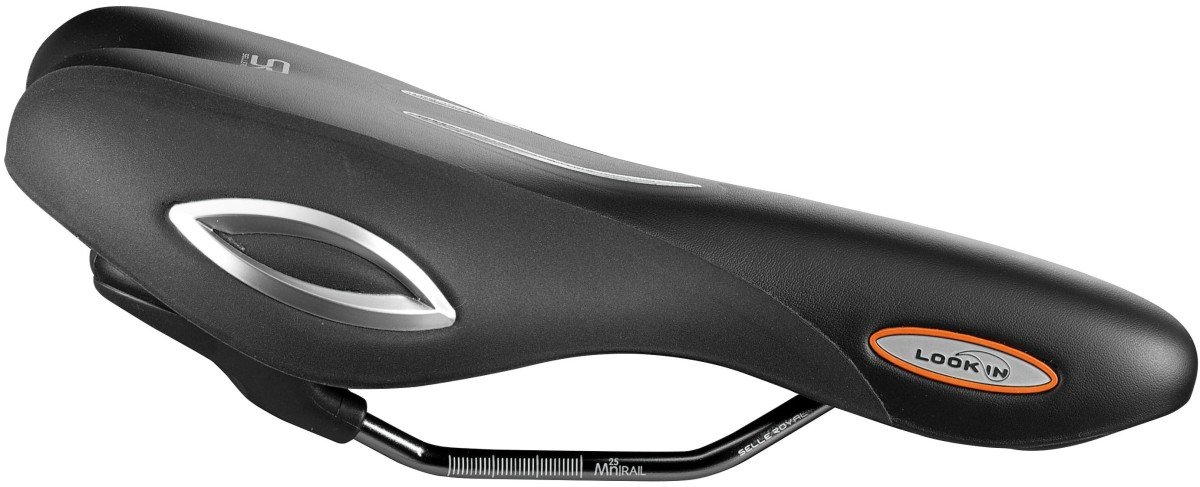 Het zadel Look IN Moderate for Men van Selle Royal heeft een scala aan fietsvriendelijke elementen. Het gesloten oppervlak is gedeeltelijk doorzichtig, zodat de fietser kan zien hoe de Royalgelâ„¢ zadelvulling beweegt, reageert en de druk op drukpunten tot 40 procent vermindert. Ook heeft het zadel aantrekkelijke zilveren flankbescherming dat ongewenste krassen of scheuren tegengaat. De vorm van de versie Moderate verdeelt het gewicht van de fietser met licht gebogen zitpositie optimaal.