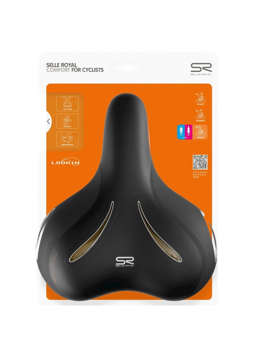 Het gesloten oppervlak van het zadel Look IN Relaxed Unisex is gedeeltelijk doorzichtig, zodat de fietser kan zien hoe de Royalgelâ„¢ zadelvulling beweegt, reageert en de druk op drukpunten vermindert tot 40 procent. Zilveren flankbescherming aan de zijkanten voorkomt ongewenste krassen en verhoogt de levensduur van het zadel. Dit model is extra breed aan de achterkant voor meer comfort en verdeelt het gewicht van de fietser met rechte zitpositie optimaal.